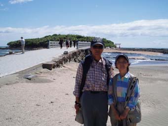 5月20日 雲1つ無い晴天、タクシーでシェラトンリゾートまで行き観光バスに乗る、先ず青島に行くも風強く帽子が吹き飛ばされそう、青島神社に参 拝する。次は見晴らしの良い堀切峠、海の色はコバルトブルーで美しく鬼の洗濯板と言われている岩盤も見事でした。ついで鵜戸神宮に立ち寄る、長い階段を降 りた祠に神社があり航海の安全を祈願する、運玉をしたの岩の凹みに投げる遊びがあり、私は駄目でしたが家内1つ入って大喜び。帰りは長い階段を上がってき て汗びっしょりとなる。最後は飫肥城址(おび)散策、お城は残っていませんが立派な城壁などは当時のまま残っていて、さすが五万石の城下町を忍ばせます、 九州の小京都と呼ばれているそうです。歴史資料館等を見学する、最後に時間があったので四半的と言う弓を引いてみました。これは的までの距離4間半、弓矢 の長さ4尺半。的の大きさ4寸半と言う小型の弓です。10本中3本命中し初めてにしては上出来と言われました。帰りはバスガイドさんの好意でマリーナ近く で降ろしてもらいラッキーでした。いよいよ明日は細島です。